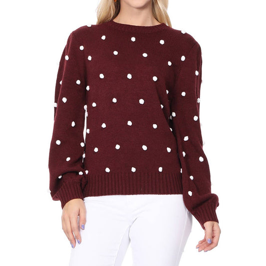Pom Pom Crochet Polka Dot Round Neck Sweater Top MK8228 (S-L)
