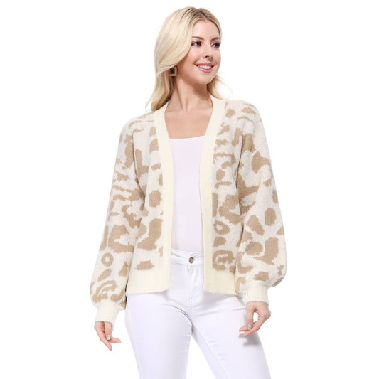 Leopard Jacquard Open Front Shrug Cardigan HK8254LEO (S/M-M/L)