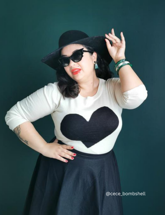 Love Heart Chenille Crewneck 3/4 Sleeve Pullover Sweater MK3595 (S-L)