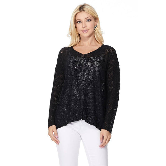 Wide V-Neck Oversized Sweater Top with Side Slit MK8219 (S-L)