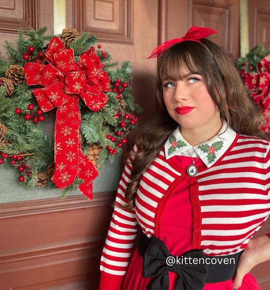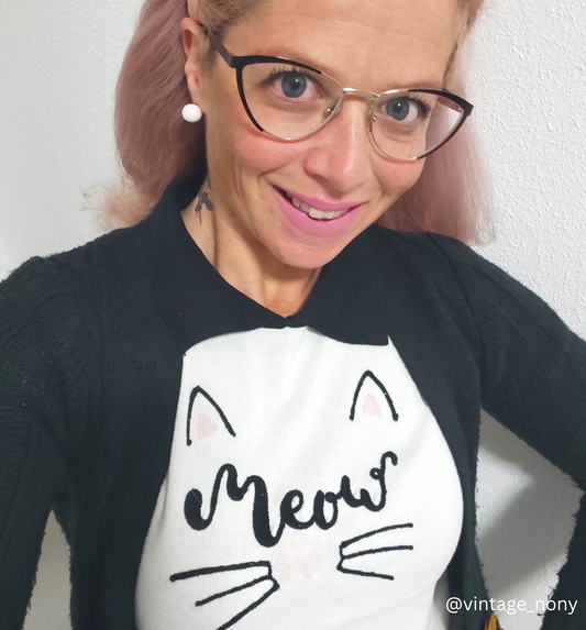 Women's Meow Cat Classic Contrast Collar Short Sleeve Casual Pullover Sweater MK3591MEOW (S-L)