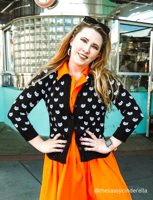 3/4 Sleeve Crewneck Cat Pattern Stylish Cardigan Sweater MK3466 (S-L)