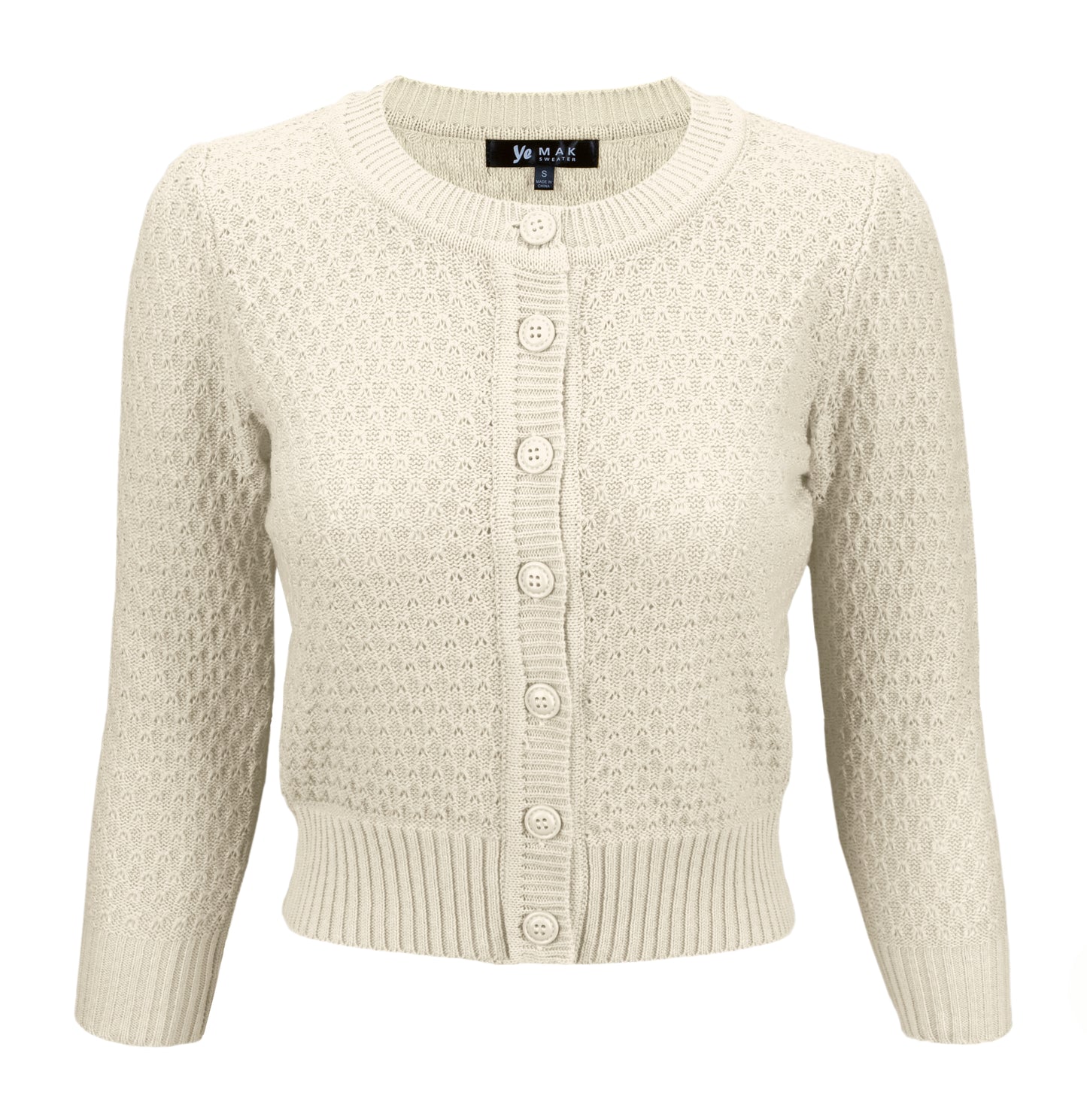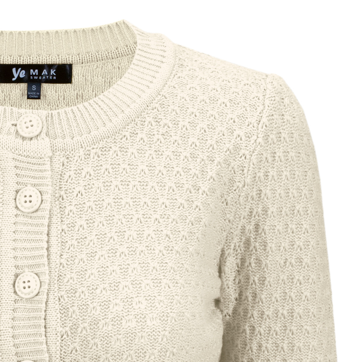 3/4 Sleeve Crewneck Crochet Knit Cropped Cardigan Sweater MK3514Y