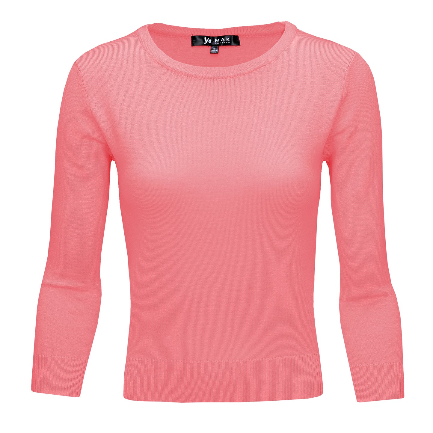 3/4 Sleeve Crewneck Soft Casual Lightweight Basic Solid Knitted Top MK3636 (S-XL)