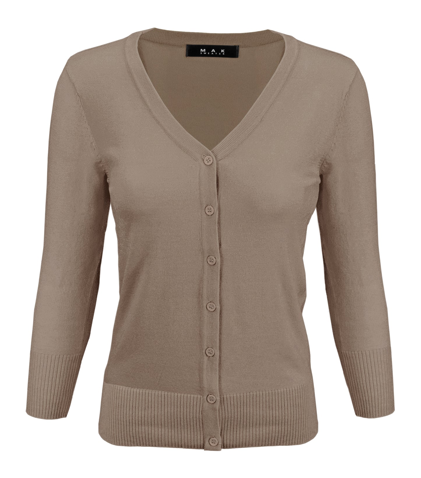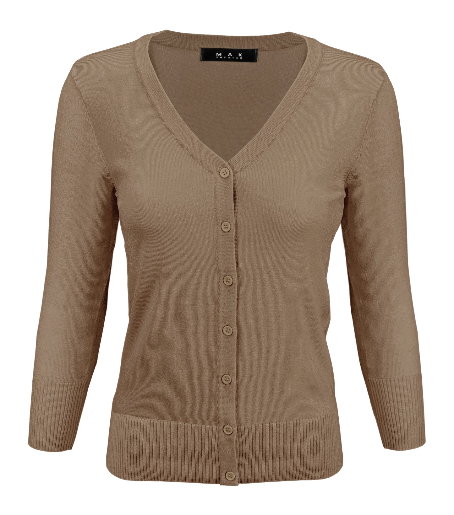 3/4 Sleeve V-Neck Button Down Knit Cardigan Sweater CO078 (S-L)