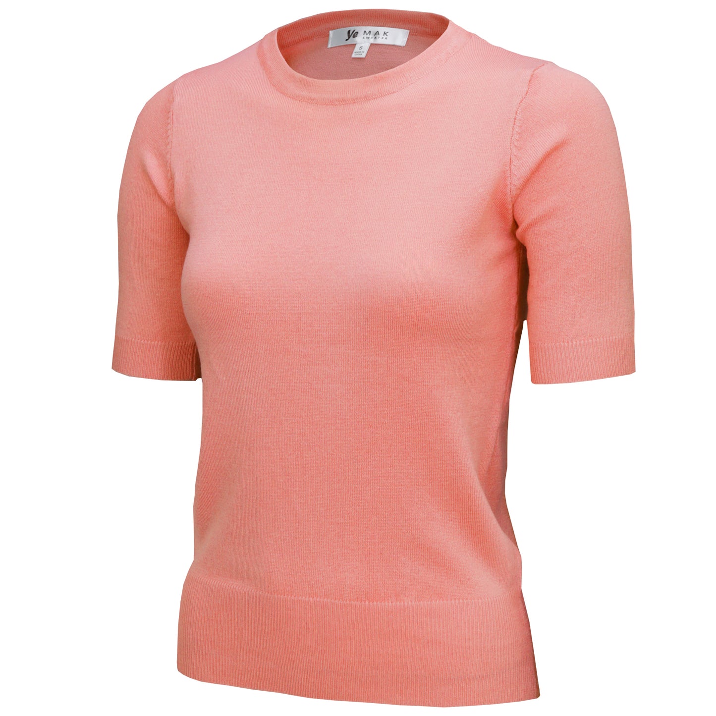 - 21.25"-22.75" Length, 1/2 Short Sleeves, Colorful, Basic, Casual, Simple, Knit Pullover Sweater for Women.